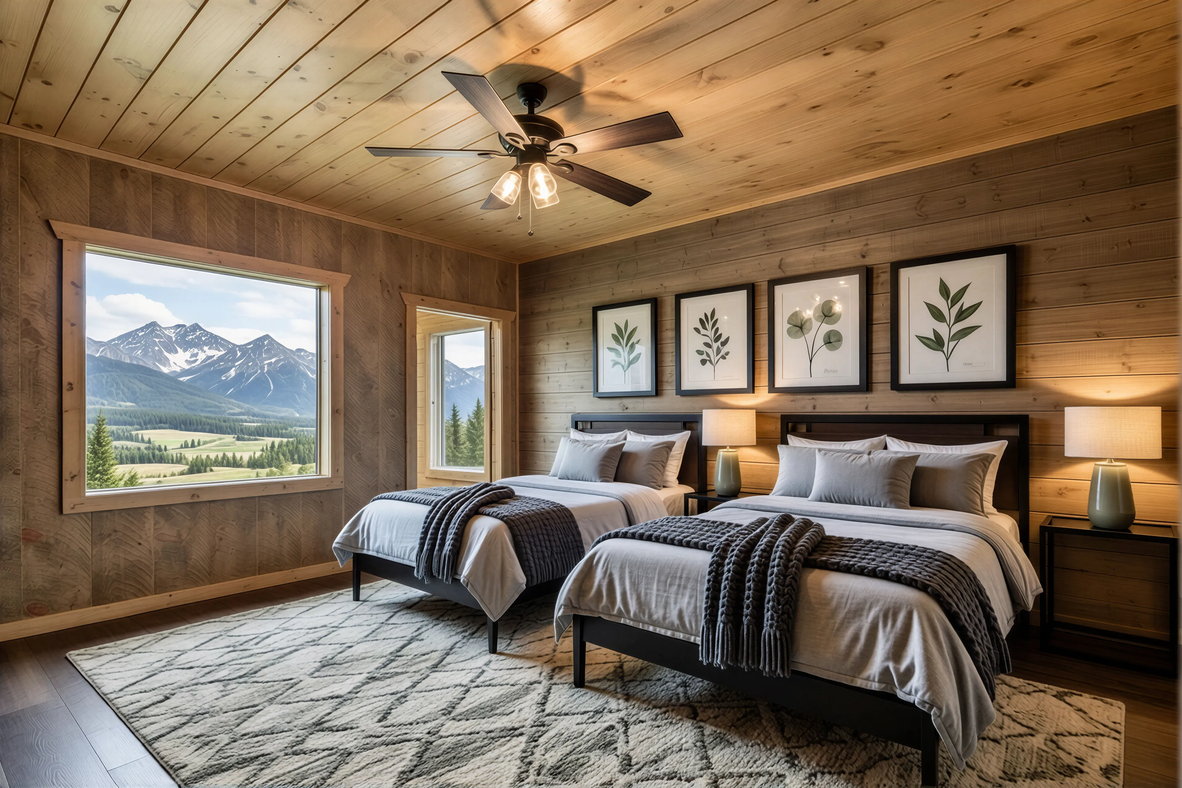 Strategically staged to demonstrate occupancy potential for investors. By pairing sophisticated wood frames with a palette of dusty juniper and sage, this room transforms into a high-end guest sanctuary that maximizes short-term rental appeal.
